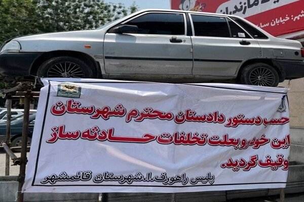 اقتصاد ایران: رئیس پلیس ترافیک شهری پلیس راهور فراجا از توقیف پراید متخلف در قائمشهر و قرار گرفتن آن بر روی داربست جهت عبرتآموزی عمومی خبر داد.