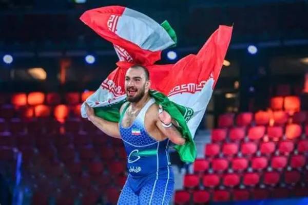 اقتصاد ایران: سلام نظامی امیرحسین زارع به پرچم ایران پس از کسب مدال طلای مسابقات کشتی آزاد قهرمانی جهان را مشاهده میکنید.