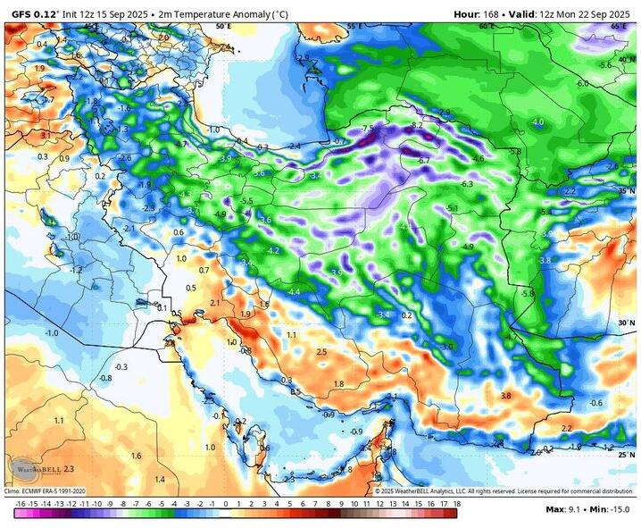 اقتصاد ایران: یک مقام مسئول سازمان هواشناسی با اشاره به نفوذ موج جدید بارشهای سنگین از هفته آینده به کشور گفت: از روز شنبه با نفوذ توده هوای خنک، کاهش دمای غیرمعمول در اکثر نقاط کشور تداوم خواهد داشت.