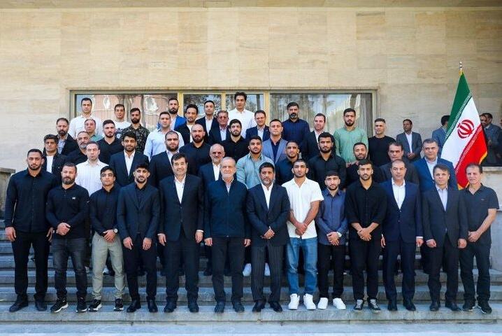 به گزارش خبرگزاری مهر، مسعود پزشکیان رییس جمهور پیش از ظهر امروز سهشنبه ۸ مهر ۱۴۰۴، در مراسم تجلیل از مدالآوران، کادر فنی و مسئولان تیمهای ملی کشتی آزاد و فرنگی، پس از کسب قهرمانی جهان در رقابتهای کرواسی، با اشاره به اینکه این قهرمانی روح تازهای در جامعه دمید، بر ضرورت تلاش برای استمرار این موفقیتها تأکید کرد و گفت: انسان همواره باید در تکاپو باشد تا از رقبا عقب نماند، یا کمتر از سایرین نباشد. شما جوانان ورزشکار نشان دادید، ما برای برتری کشور خود تلاش میکنیم و نسبت به سرزمین خود عرق و تعصب داریم.