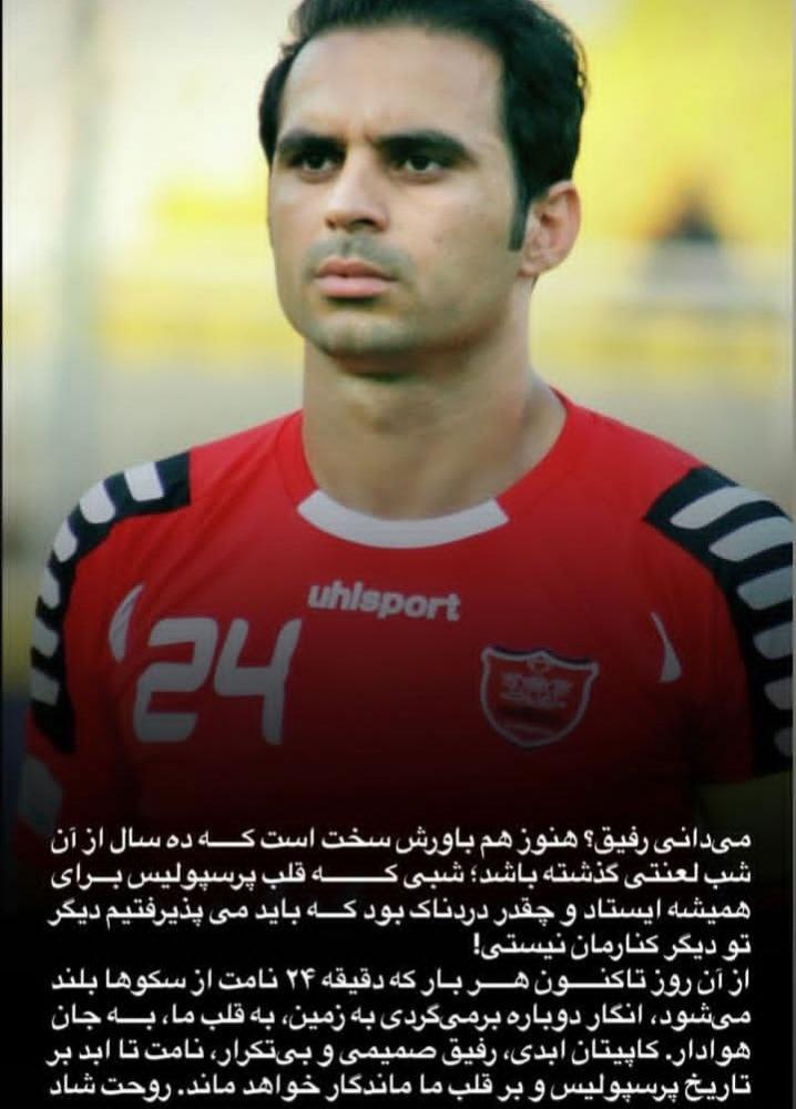 عالیشاه ادامه داد: «از آن روز تا امروز، هر بار که دقیقه ۲۴ نامت از سکوها بلند میشود، انگار دوباره برمیگردی به زمین، به قلب ما. به جان هواداران بیپایانت، رفیق صمیمی و بیتکرار. نامت تا ابد بر تاریخ پرسپولیس و بر قلب ما ماندگار خواهد ماند. روحت شاد.»