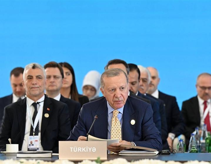 اردوغان در سخنان خود در بین سران کشورهای ترک زبان، درباره وضعیت کنونی امنیت منطقه و جهان گفت: «سازمان کشورهای ترک زبان دیگر فقط یک اتحاد فرهنگی نیست. این یک بستر استراتژیک برای افزایش همبستگی است. تنشهای جهانی بر همه تأثیر میگذارد و کشورهای عضو سازمان کشورهای ترک زبان را نیز عمیقاً نگران میکند. با توجه به نزدیکی آنها به مناطق درگیری، میتوان با اطمینان گفت که این شورا بیشتر از سایر کشورها تحت تأثیر این تنشها قرار دارد. بنابراین، در جایی که خطر وجود دارد، اقدامات احتیاطی اجتنابناپذیر خواهد بود. با این حال، ما برای هر موقعیتی آماده هستیم. ما در حال بحث در مورد همکاری چندبعدی، از امنیت اطلاعاتی و مرزی گرفته تا امنیت سایبری هستیم. یک روند جهانی برای افزایش هزینههای دفاعی و برداشتن گامهای بیشتر در زمینه امنیت وجود دارد. به عنوان اعضای سازمان کشورهای ترک زبان، ما در این راستا گام برمیداریم».