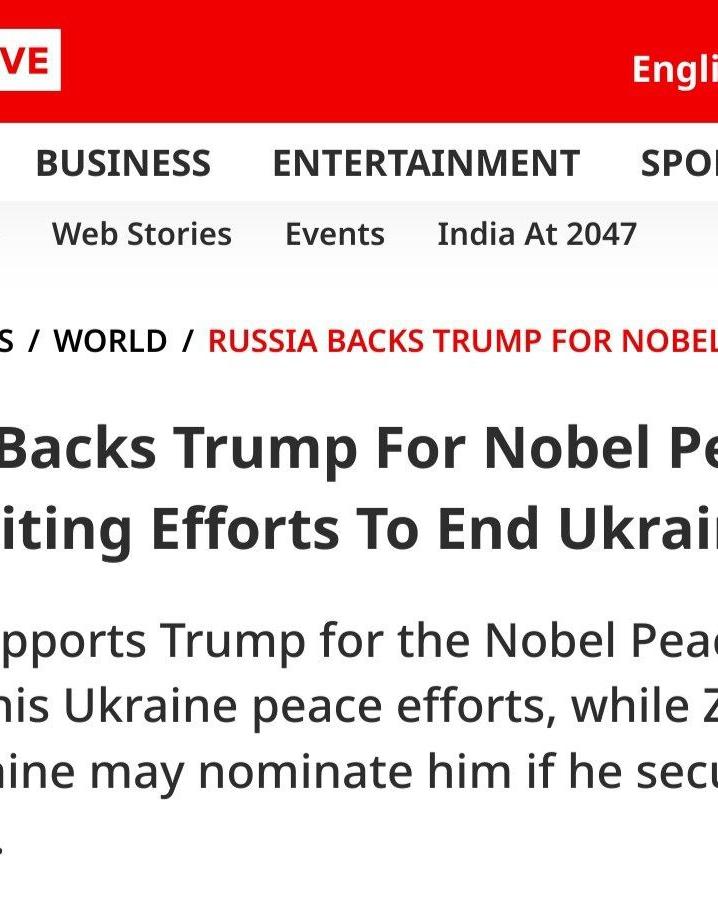 روسیه بارها اعلام کرده است که برای تلاشهای ترامپ جهت پایان دادن به جنگ در اوکراین سپاسگزار است. ولودیمیر زلنسکی، رئیسجمهور اوکراین، روز پنجشنبه در اظهاراتی گفت که در صورت موفقیت ترامپ در برقراری آتشبس، کیِف او را برای دریافت این جایزه، که او علناً مشتاق آن است، نامزد خواهد کرد.