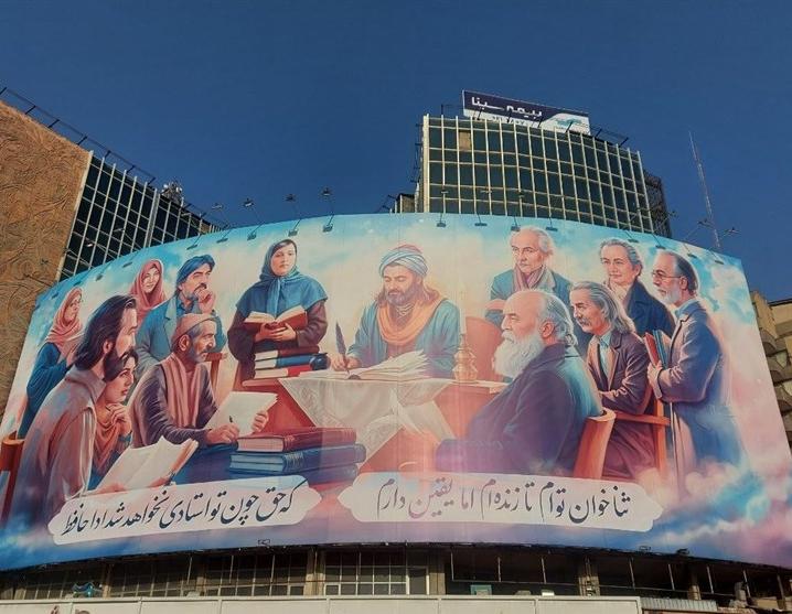 این اثر که حاصل دسترنج هنرمندان ایرانی در خانه طراحان انقلاب اسلامی است، در میدان ولیعصر(عج) تهران نصب شده است. ویژگی این اثر در آن است که اندیشه، فلسفه و کار جمعی را به خوبی نمایان میکند. این اثر برآمده از یک اتاق فکر با نگاه باز است که به داشتههای وطن احترام میگذارد. در تصویر، شاعران معاصر در اطراف حضرت حافظ که مرکزیت تصویر را از آن خود دارد، دیده میشوند. هم زن و هم مرد. از نیما یوشیج تا قیصر امین پور. از ملک الشعرای بهار تا سهراب سپهری. از شهریار تا هوشنگ ابتهاج. از فروغ فرخزاد تا سپیده کاشانی. از مهدی اخوان ثالث تا طاهره صفارزاده. حتی از گوته، شاعر و فیلسوف بزرگ آلمانی که شیفته حافظ بوده هم در اینجا نشانی هست.
