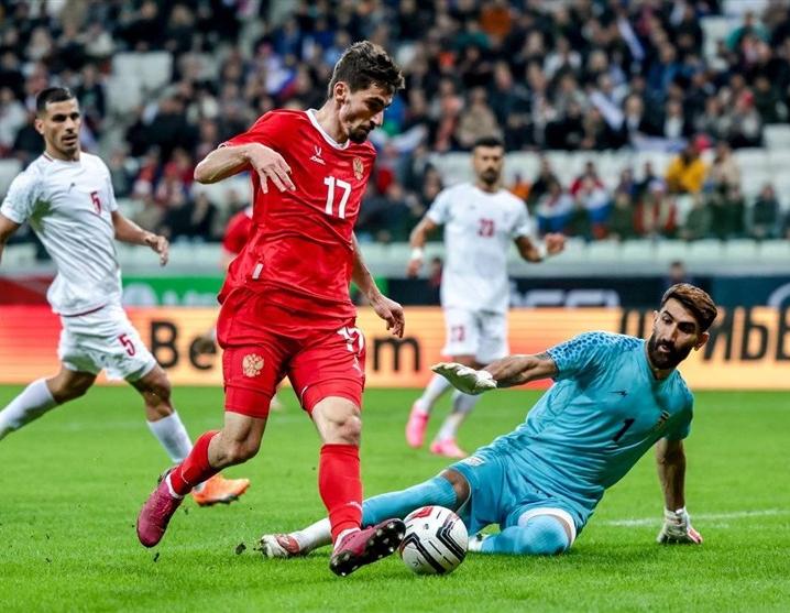 روسها در نیمه نخست با توجه به حمایت 42 هزار نفری هواداران خودی با پرس روی دروازه ایران در چند نوبت موقعیت ایجاد کردند تا اینکه دمیتری وروبیوف در دقیقه 22 روی پاس عمقی آنتون میرانچوک دروازه ایران را باز کرد. در شروع نیمه دوم، پرس این بار از سوی بازیکنان ایران شکل گرفت و رامین رضاییان در دقیقه 48 با پاسی دقیق، سامان قدوس را صاحب توپ کرد و این بازیکن پاسی عرضی به امیرحسین حسینزاده داد تا بازیکن شماره 10 تیم ملی بازی را به تساوی بکشاند.