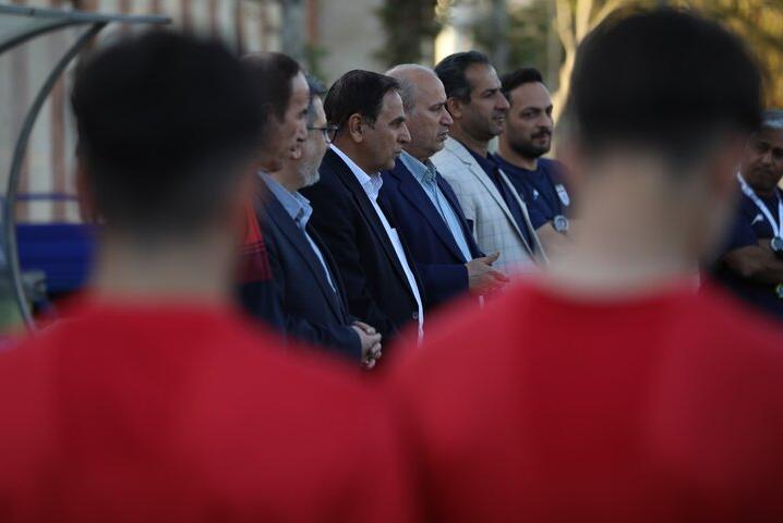 به گزارش خبرگزاری مهر و به نقل از سایت فدراسیون فوتبال، مهدی تاج، رئیس فدراسیون امروز یکشنبه همراه با نمایندگان مجلس شورای اسلامی، معاونت بانوان وزارت ورزش، اعضای هیات رئیسه فدراسیون، علی تارقلیزاده، مدیر فنی و توسعه و داود پرهیزکاری، رییس مرکز ملی فوتبال در محل تمرین تیم ملی نوجوانان حضور یافتند.