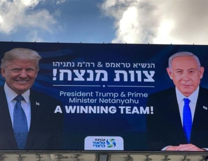 به نوشته این رسانه عبری زبان این گروه تابلوی تبلیغاتی بسیار بزرگی را در بزرگراه شماره 4 قرار داده است که بیشتر نشانگر تبلیغات انتخاباتی برای نخست وزیر اسرائیل است تا خوش آمدگویی به رئیس جمهور ایالات متحده آمریکا.