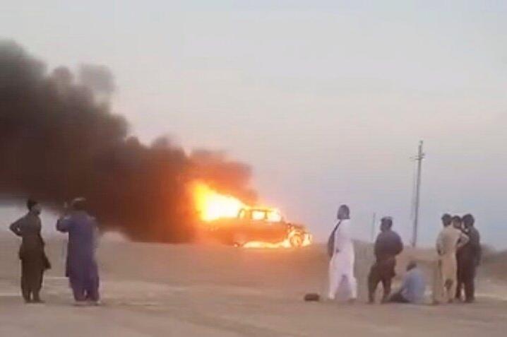 خودرو مهندسان پروژه انتقال آب چابهار - زاهدان آتش گرفت