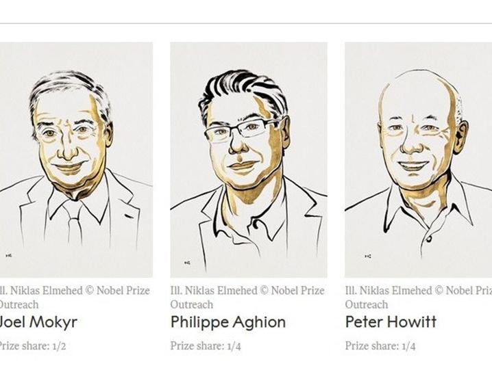 جول موکیر متولد هلند و استاد دانشگاه نورث وسترن آمریکا، فیلیپ آگیون متولد فرانسه و استاد دانشگاه علوم سیاسی و اقتصاد لندن و پیتر هویت متولد کانادا و استاد دانشگاه براون آمریکا برندگان نوبل اقتصاد 2025 معرفی شده اند.