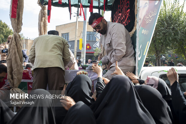 لباسهای سیاه، پلاکاردهای حاوی نام شهید، تصاویر وی و دست نوشتههایی که از عشق و ارادت به راه وی حکایت داشت، همه جا دیده میشد. صدای ذکر «یا حسین» و نوای دلنشین قرآن، فضای میدان را در بر گرفته بود؛ آوازی که از عمق جان مردم برمیخاست و تمام غم و اندوه را به امید و ایستادگی تبدیل میکرد.