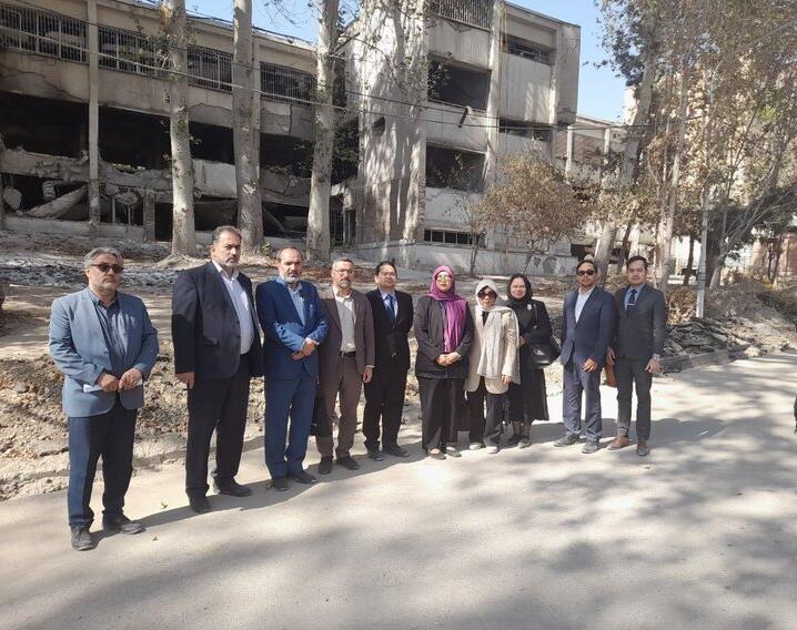 هیئت اندونزیایی از بخشهای مختلف ندامتگاه اوین که هدف تجاوز رژیم صهیونسیتی قرار گرفته بودند از جمله ساختمان اداری و بیمارستان ندامتگاه دیدار کردند.