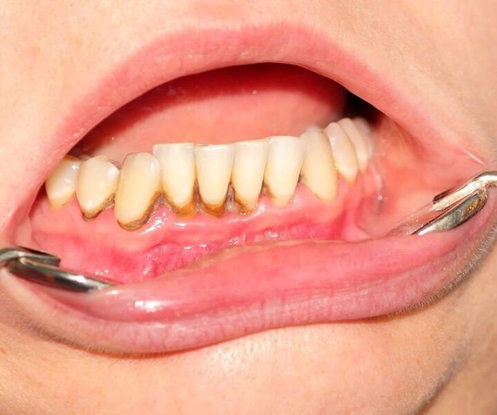 • عفونت لثه: تجمع باکتری‌ها در اطراف خط لثه، خطر التهاب، خونریزی و عفونت را افزایش می‌دهد. با ادامه این روند، عفونت به بافت‌های عمقی‌تر لثه سرایت کرده و موجب تحلیل استخوان فک و بافت‌های نگهدارنده دندان می‌شود.