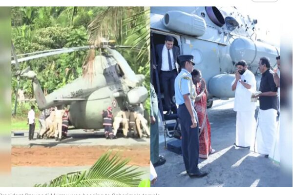 پس از آنکه رئیس جمهور هند از طریق جاده به مقصد پامبا حرکت کرد، چندین نفر از نیروهای پلیس و پرسنل آتش نشانی در حال هل دادن چرخ‌های بالگرد Mi-۱۷ نیروی هوایی هند از گودال‌های کوچک ورزشگاه سرپوشیده راجیو گاندی دیده شدند.