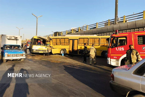 تعداد مصدومین تصادف ۲ اتوبوس در جاده مخصوص کرج به ۲۶ نفر رسید