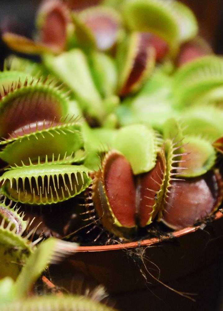 گیاه ونوس مگسخوار شاید شناختهشدهترین گیاه گوشتخوار باشد. برگهای آن دو لُب متحرک دارد که همچون تله با دوبار تحریک موهای ظریف در سطح داخلیشان، ناگهان بسته میشوند. پس از گرفتار شدن حشره، گیاه آنزیمهای گوارشی ترشح میکند تا طعمه را تجزیه کرده و مواد مغذی ضروری مانند نیتروژن و فسفر را جذب کند.