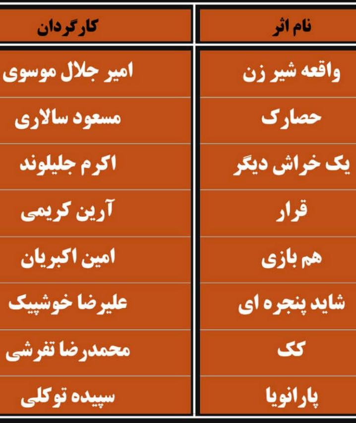نمایش های برگزیده بدین شرح اعلام شده است: