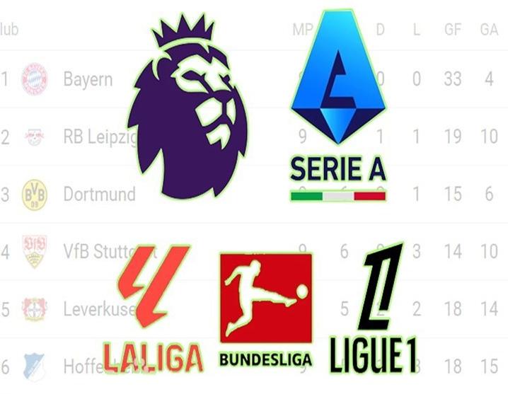 بهترین تیمهای 5 لیگ برتر اروپا از نظر آمار گلهای زده