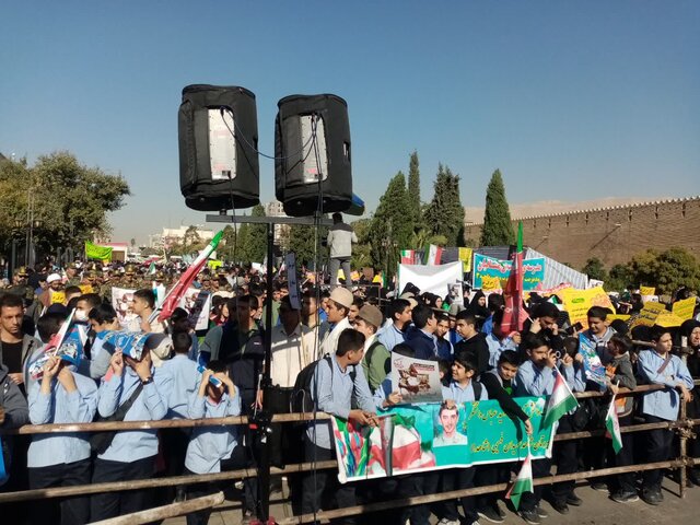 اقتصاد ایران: ایسنا/فارس آیین بزرگداشت روز ملی مبارزه با استکبار جهانی و روز دانشآموز امروز سهشنبه، ۱۳ آبان با حضور گسترده اقشار مختلف مردم در شهر شیراز آغاز شد. در این مراسم مسئولان و دانشآموزان بر زنده بودن نهضت و روحیه مقاومت ملت ایران در مقابل دشمنان تأکید کردند و این روز را سند زنده ایستادگی این ملت دانستند.