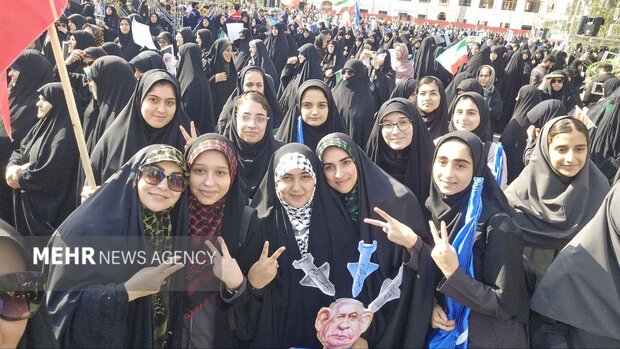 دانش آموزان رشتی با مهر از چرایی حضور خود در راهپیمایی می گویند