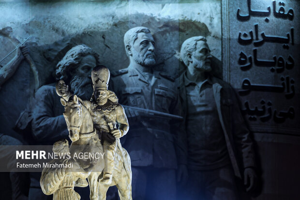 نقطه آغاز این حرکت، رونمایی از مجسمهای نمادین در میدان انقلاب تهران بود؛ چرا که این اثر، با الهام از شکست امپراتور روم، والرین، به دست شاپور دوم ساسانی طراحی شده و نه صرفاً یک سازه هنری، بلکه بیانیهای بصری است که پیام ایستادگی ایران در برابر سلطهطلبی تاریخی را بازتاب میدهد.
