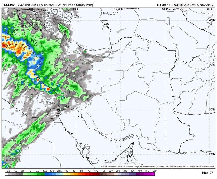 ضیائیان بیان کرد: در روز یکشنبه (۲۵ آبان) نیز همین شرایط در استانهای آذربایجان غربی، آذربایجان شرقی، زنجان، کرمانشاه، کردستان، ایلام، چهارمحال و بختیاری، لرستان، ارتفاعات غربی اصفهان و ارتفاعات شمال خوزستان ادامه دارد و در برخی ارتفاعات بارش برف دور از انتظار نیست.