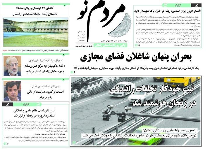 صفحه اول روزنامه های زنجان ۲۴ آبان ۱۴۰۴