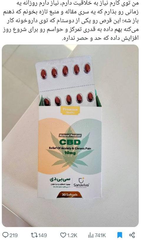 در یکی از توئیترهای اخیر، کاربری تجربه خود از مصرف کپسول CBD را به اشتراک گذاشته و نوشته است که این قرص باعث افزایش تمرکز و توانایی مطالعه روزانه او شده است. این توئیت با استقبال تعداد کمی از کاربران و واکنشهای منفی روبهرو شد.