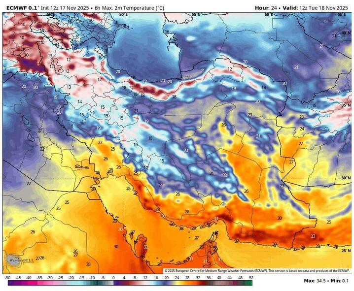 وی افزود: امروز در نواحی شمالشرق کشور کاهش دما رخ میدهد. همچنین امروز در جنوبغرب و فردا (۲۸ آبان) و روز پنجشنبه (۲۹ آبان) در شرق کشور افزایش سرعت باد مورد انتظار است. با این حال از امروز سهشنبه تا پایان هفته، افزایش غلظت آلایندهها در شهرهای صنعتی و پرجمعیت دور از انتظار نیست.