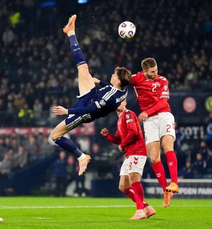 دو تیم دانمارک و اسکاتلند که هر دو شانس صعود مستقیم به جام جهانی را داشتند در هفته پایانی مقدماتی جام جهانی به مصاف هم رفتند. اسکاتلند که باید برای صعود حتماً در این مسابقه حساس خانگی به پیروزی میرسید، روی یکی از بهترین گلهای تاریخ تیم ملی این کشور در دقیقه ۴ با ضربه قیچی اسکات مکتامینی پیش افتاد تا تیم ملی این کشور در نیمه اول به پیروزی برسد.