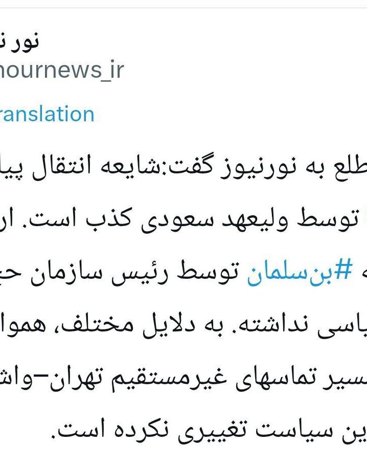 اقتصاد ایران: یک مقام مطلع گفت: شایعه انتقال پیام ایران به آمریکا توسط ولیعهد سعودی کذب است.
