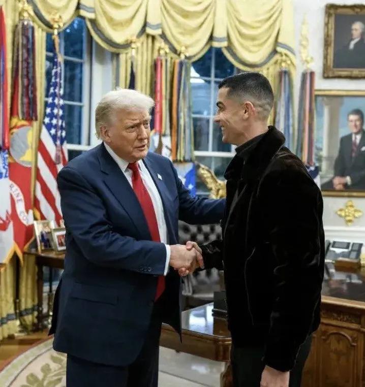 دونالد ترامپ، رئیس جمهور ایالات متحده، میزبان کریستیانو رونالدو در اتاق بیضی کاخ سفید بود. او کلید اقامتگاه رسمی را به رونالدو داد و باهم عکس گرفتند، اما آنها روپایی زدن با توپ را انجام ندادند. به همین دلیل، رئیس جمهور بار دیگر از یک ویدیوی ساخته شده با هوش مصنوعی استفاده کرد تا همین کار را به تصویر بکشد. روپایی زدن با پا و سر، با چابکی خیره‌کننده، لحظه‌ای که حتی به شکلی غیرعادی به پایان می‌رسد.