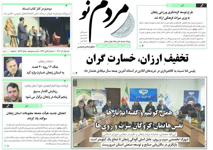 صفحه اول روزنامه های زنجان یک آذر ۱۴۰۴