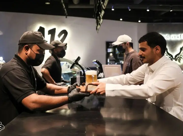 به نوشته این پایگاه عربی، یک کافه در ریاض، پایتخت عربستان محیطی شبیه میخانه‌های جهانی، اما با حال و هوای سعودی درست کرده که در آن آبجویی خالی از الکل، بادام زمینی و صفحه نمایشی برای پخش مسابقات ارائه می‌دهد و مشتری‌ها می‌توانند تجارب خود را از حضور در این کافه ثبت کنند.