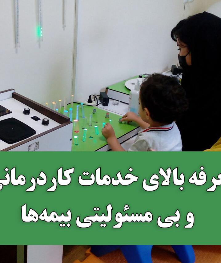 تعرفه بالای خدمات کاردرمانی و بی مسئولیتی بیمه‌ها اقتصاد ایران: با توجه به اهمیت کاردرمانی در توانمندسازی افراد دارای معلولیت و بیماران به نظر می‌رسد هزینه‌های دریافتی در مراکز کاردرمانی بالاست و از آنجا که روند کاردرمانی باید در افراد، دارای استمرار باشد و زمان زیادی می‌برد بسیاری توان پرداخت تعرفه‌های مراکز کاردرمانی را ندارند.