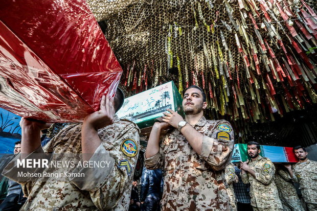اقتصاد ایران: اصفهان - مردم اصفهان برای تشییع پیکر مطهر ۱۲ شهید گمنام ۸ سال دفاع مقدس، همزمان با روز شهادت حضرت زهرا(س) در میدان بزرگمهر تجمع کردند.