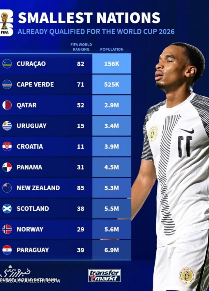 بر اساس فهرست منتشرشده، در جمع ۱۰ کشور با کمترین جمعیتِ حاضر در این دوره از رقابت‌ها، سه کشور از اروپا، یک کشور از آسیا، چهار کشور از قاره آمریکا و یک کشور از اقیانوسیه حضور دارند؛ ترکیبی که جام جهانی آینده را از نظر تنوع کشورهای کم‌جمعیت، به یکی از متفاوت‌ترین دوره‌ها تبدیل کرده است. جالب است بدانید که مجموع این ۱۰ تیم راه یافته به جام جهانی به اندازه نصف کشور ایران جمعیت ندارند.