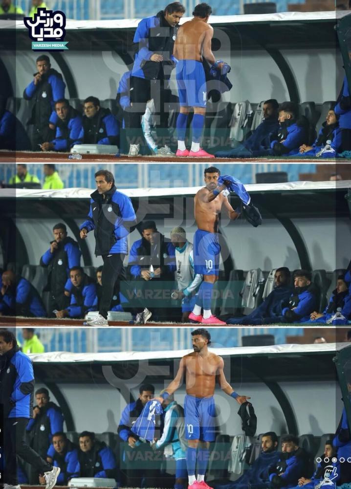 در میانه بازی، مربیان استقلال به رضاییان اعلام آمادهباش برای ورود به زمین میدهند، اما درست لحظهای که او برای تعویض آماده میشود، خبر میرسد که تصمیم کادر فنی تغییر کرده و تعویض انجام نخواهد شد. همین موضوع باعث واکنش عصبی رضاییان میشود و او در اعتراض، پیراهن استقلال را به زمین پرت میکند.