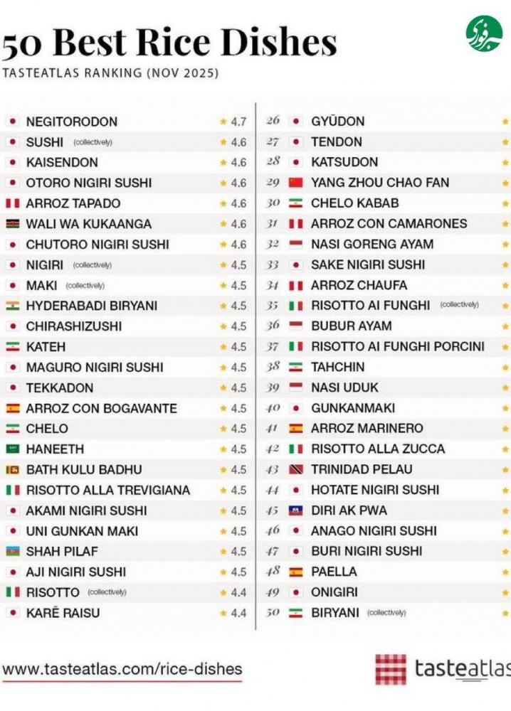 برترینها: وبسایت معتبر TasteAtlas در تازهترین فهرست خود از بهترین غذاهای برنجی جهان، نام چهار غذای ایرانی را در میان برترینها قرار داد.
