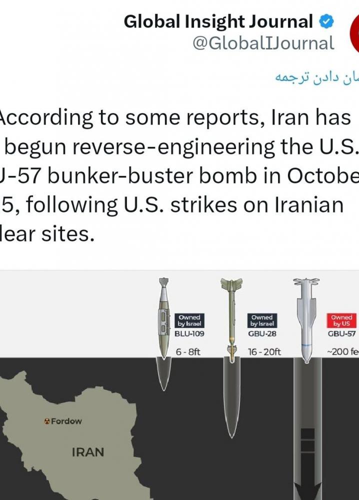 آخرین خبر: بر اساس برخی گزارشها، ایران از اکتبر ۲۰۲۵ و در پی حملات آمریکا به تأسیسات هستهای کشور، روند مهندسی معکوس بمب سنگرشکن GBU-۵۷ آمریکا را آغاز کرده است.