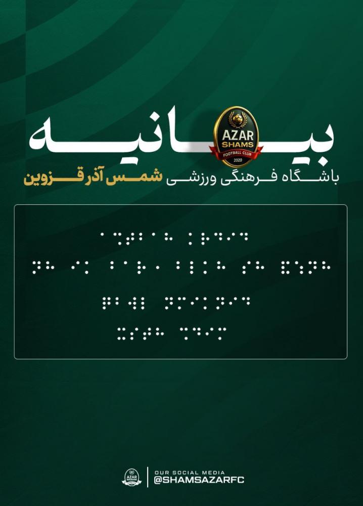 برترینها: پس از آنکه در جریان دیدار شمسآذر و پرسپولیس، داور مسابقه صحنه مشکوک به پنالتی برای شمسآذر را اعلام نکرد، صفحه رسمی این باشگاه پستی منتشر کرد که در آن متن بیانیه با خط بریل به نمایش درآمد؛ اقدامی که از سوی افکار عمومی بهعنوان کنایه به قضاوت داور تلقی شد.