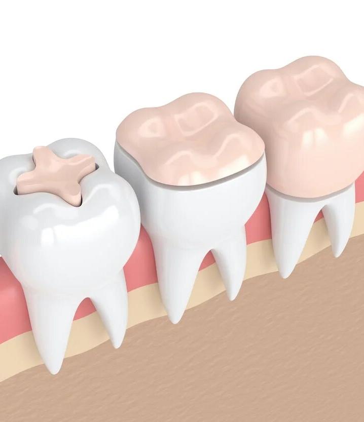 ۳. روکش: وقتی دیوارهها ضعیف هستند و نیاز به محافظت کامل دندان است.