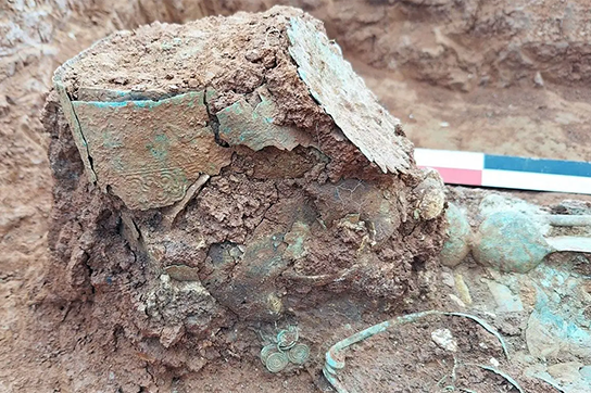 مقبرۀ بانوی تاجدار سرشار از انواع گورنهادهها از جمله تزئینات برنزی است