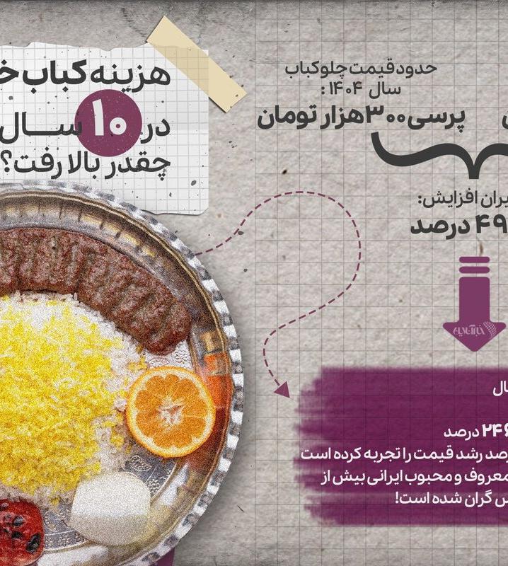 اقتصاد ایران: هزینه یک پرس چلوکباب در بهترین حالت طی ده سال نزدیک به ۴۹۰۰ درصد افزایش یافته است.