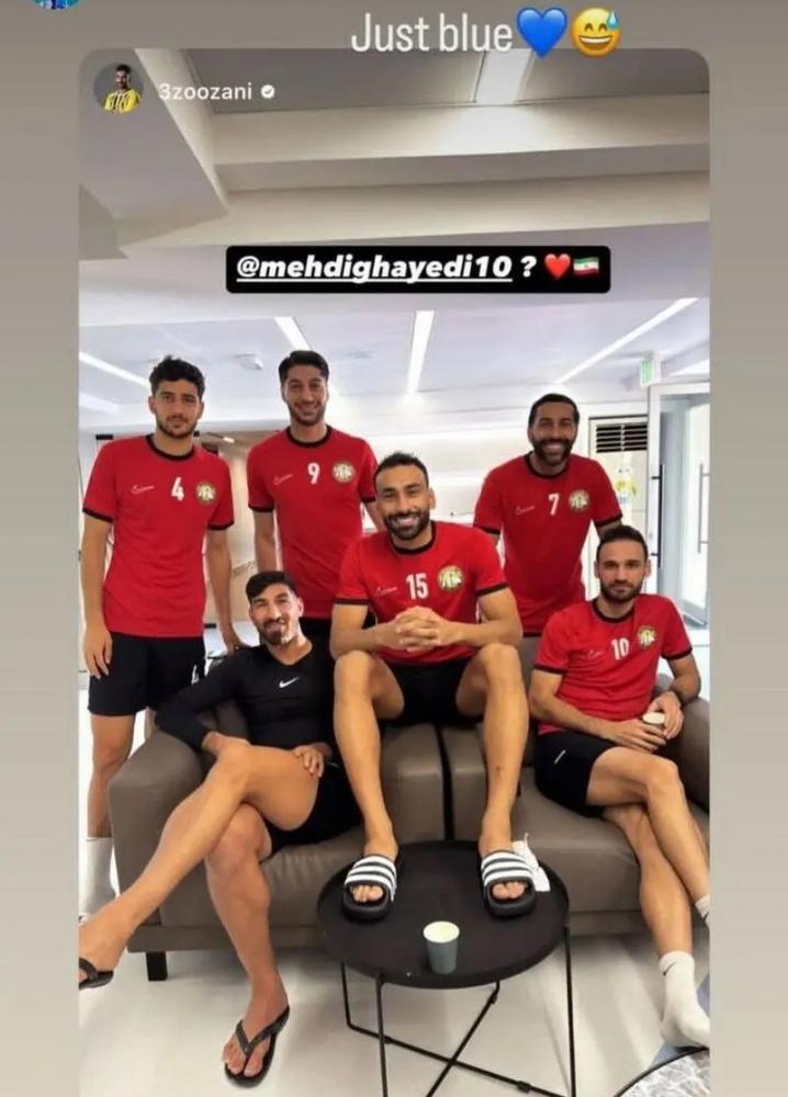 برترینها: عبدالعزیز حمد همبازی سابق مهدی قایدی در اتحاد کلبا یک عکس در کنار دیگر همبازیان ایرانی اش که همگی پیراهن قرمز به تن داشتند منتشر کرد. او زیرکانه قایدی را با یک قلب قرمز منشن کرد که ستاره ریز نقش پیشین استقلال هم همان استوری را بازنشر کرد و کنار یک قلب آبی نوشت: «فقط آبی» تا بدین ترتیب به استوری عبدالعزیز واکنش نشان بدهد.