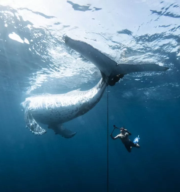 به گزارش وبسایت مسابقه عکاسی اقیانوسیه ۲۰۲۵، عکس برتر امسال لحظهای نفسگیر را ثبت کرده است که در آن غواصان درحال بریدن زنجیرهای زنگزده و سنگینی هستند که به دم یک نهنگ گوژپشت گره خورده بود.