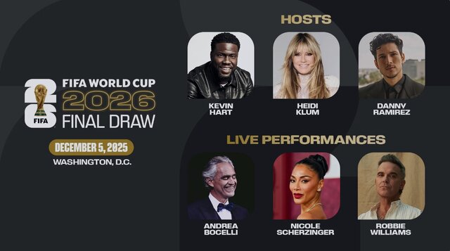 اقتصاد ایران: فیفا با اعلام جزئیات مراسم قرعهکشی جام جهانی ۲۰۲۶، صحنهای ستارهساز را در واشنگتن تدارک دیده است. هایدی کلوم و کوین هارت به عنوان مجریان اصلی انتخاب شده اند و آندرهآ بوچلی، رابی ویلیامز و نیکول شرزینگر اجرای زنده خواهند داشت.