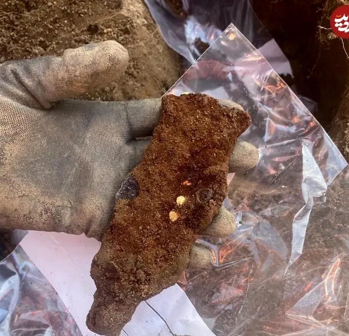 یکی از قطعات طلاکوب در لحظۀ کشف