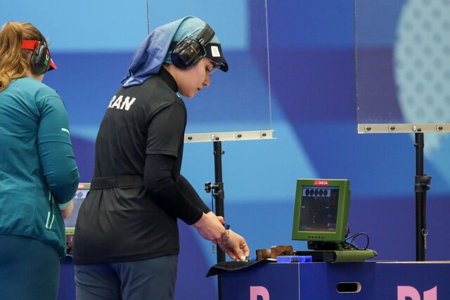 مریم سلطانی، سرمربی تیم تپانچه کشورمان هانیه رستمیان را همراهی کرد.