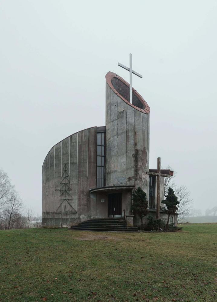 اقتصاد ایران: کلیسای سنت آنتونی، واقع در روستای کوچک یدزبارک لهستان، که بین سالهای ۱۹۷۴ تا ۱۹۸۲ با سبک بروتالیست ساخته شده، به دلیل تضاد شدید با محیط روستایی اطراف، توجه منتقدان معماری را به خود جلب می کند.