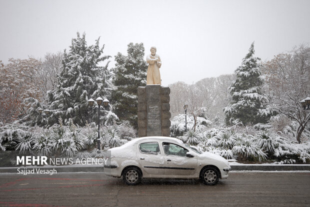 کاهش دید در گردنه گدوک فیروزکوه بر اثر برف و کولاک